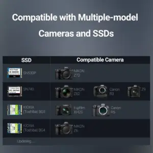 Notas: As câmeras e SSDs compatíveis atualmente conhecidos estão listados, mas se você adquiriu nosso produto e experimentou outras opções, fique à vontade para deixar seu comentário, para que possamos enriquecer soluções mais viáveis.