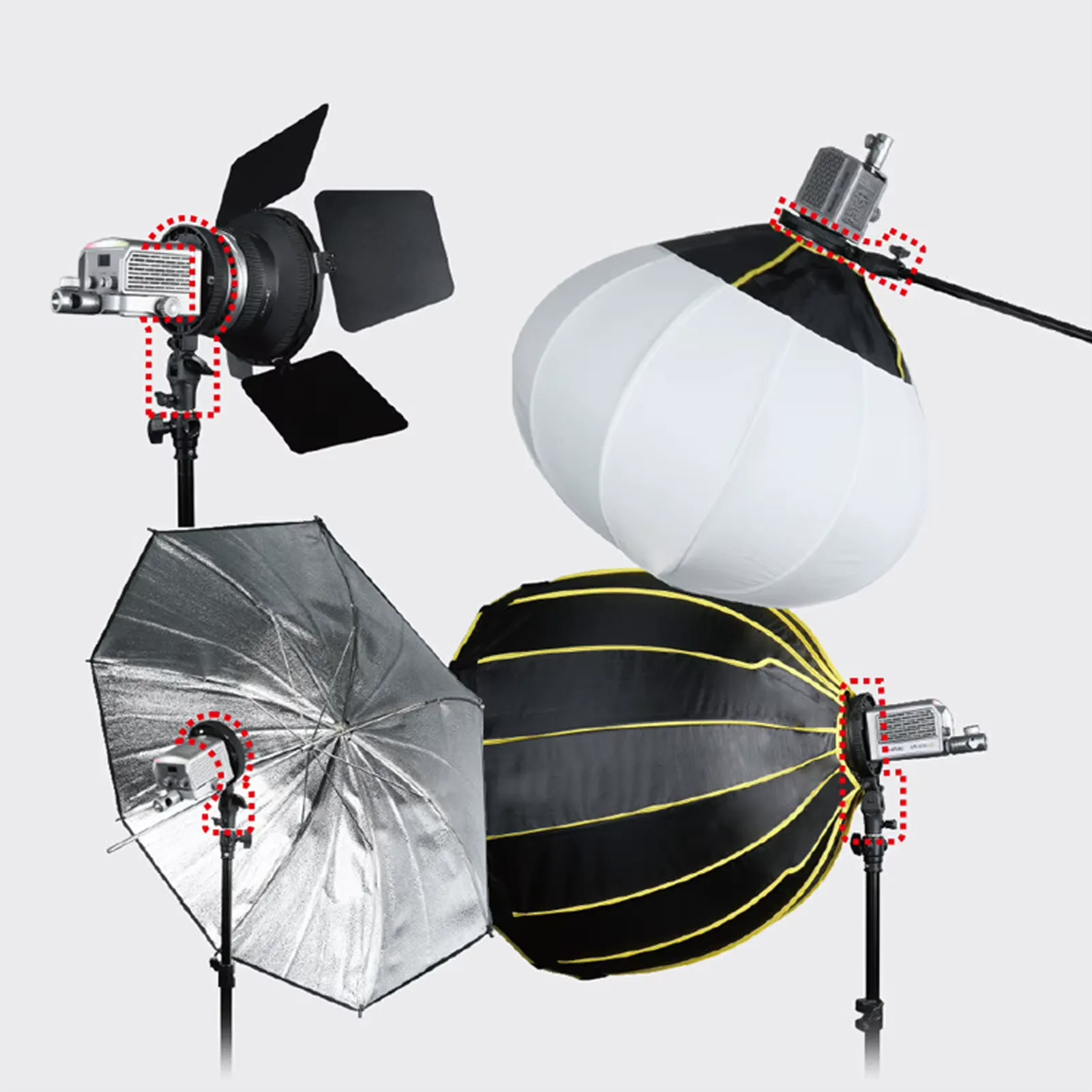 1. Compatibilidade Universal: converte a montagem Mini Bowens (tipo B) para padrão Bowens, permitindo o uso de inúmeros acessórios de iluminação profissionais.