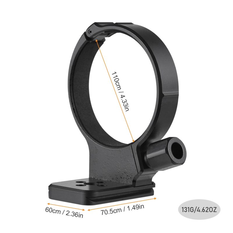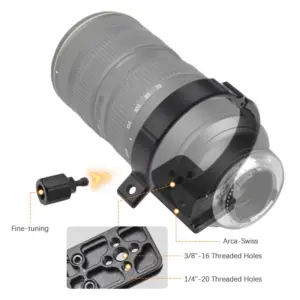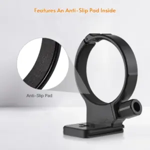 4. O anel de montagem tripé fornece uma plataforma segura e equilibrada para sua lente telefoto. É especialmente útil para lentes pesadas ou quando a lente telefoto é estendida na frente da câmera, ajudando a estabilizar e equilibrar seu equipamento para um disparo ideal.