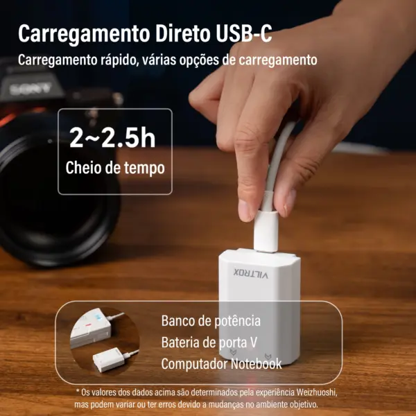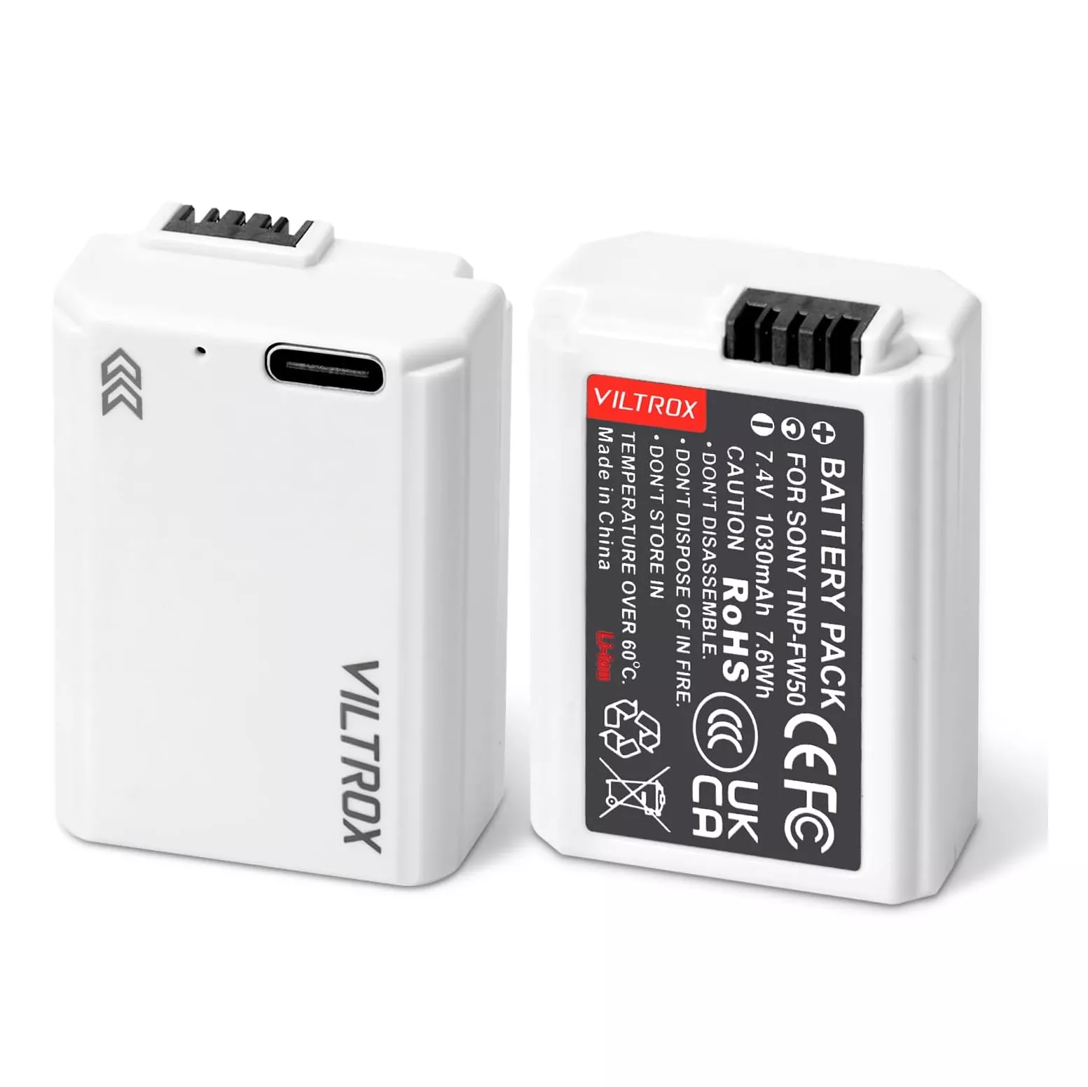 Bateria Viltrox NP-FW50 1030mAh com USB-C para Câmeras Sony