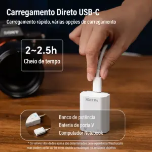 Seu carregamento via USB-C elimina a necessidade de carregadores dedicados, trazendo mais praticidade para fotógrafos, videomakers e criadores de conteúdo que precisam de mobilidade e eficiência.