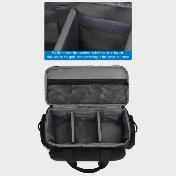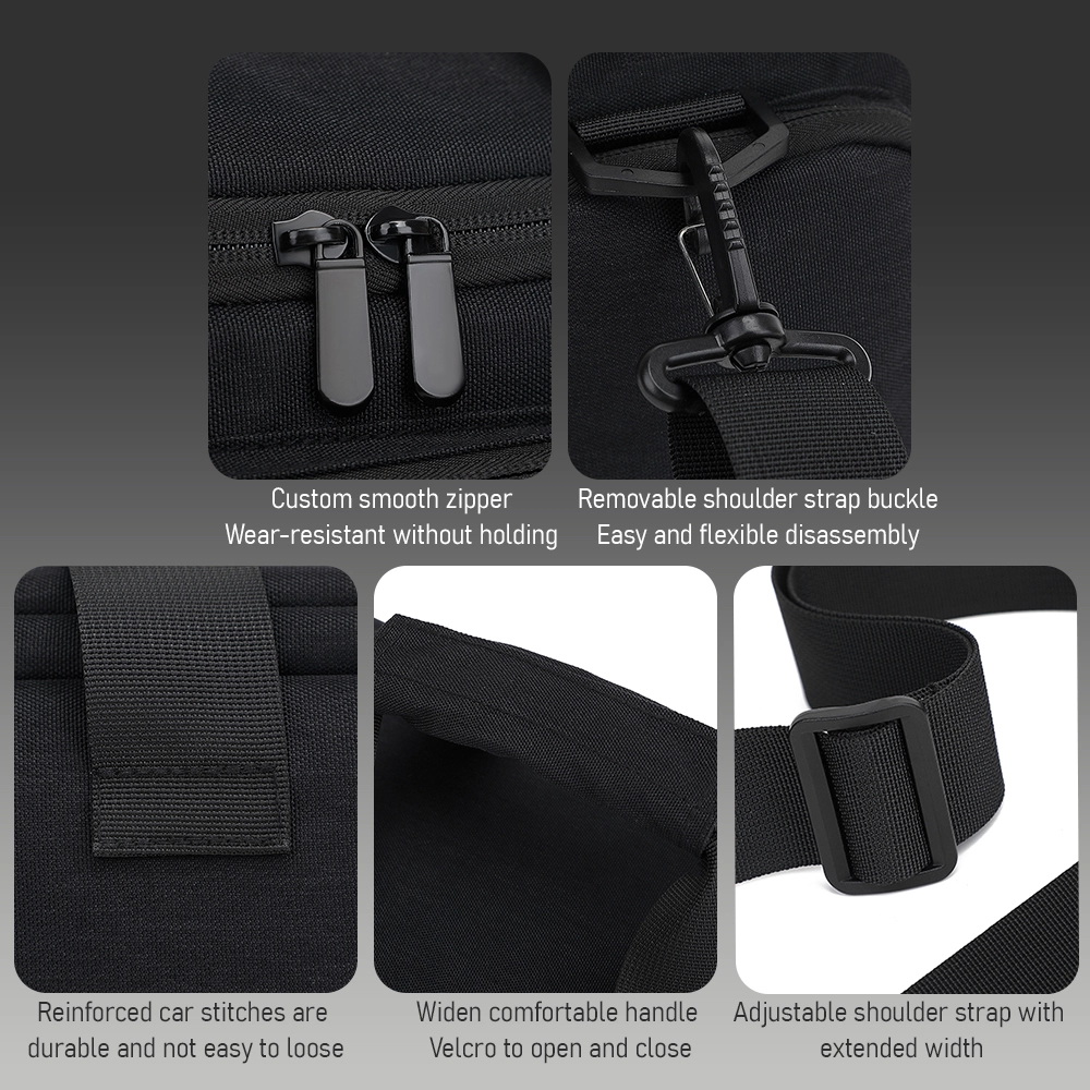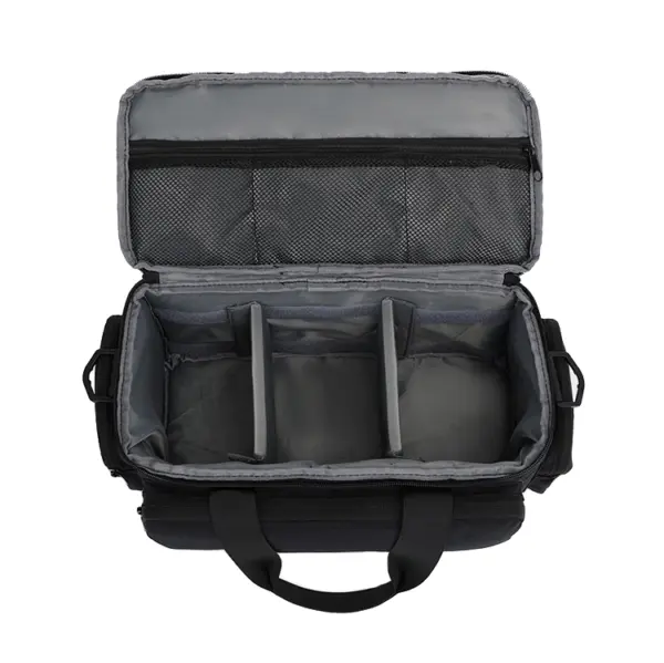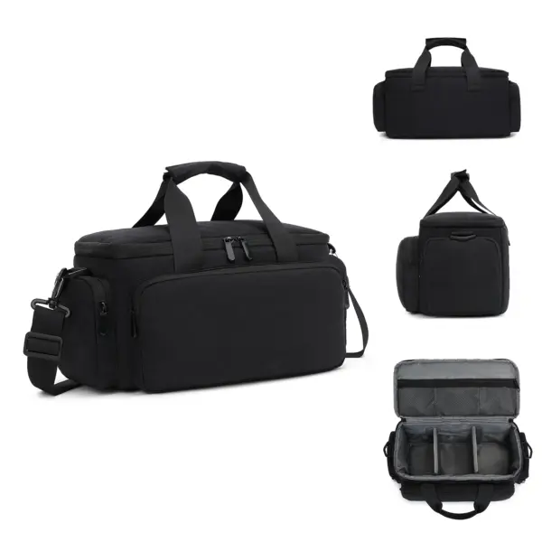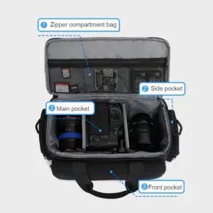 Esta Bolsa para Câmera com Alça de Ombro apresenta um design profissional e minimalista em cor preta, desenvolvida para oferecer máxima proteção e funcionalidade. Sua construção em nylon de alta densidade confere durabilidade excepcional, mantendo um perfil leve e compacto.