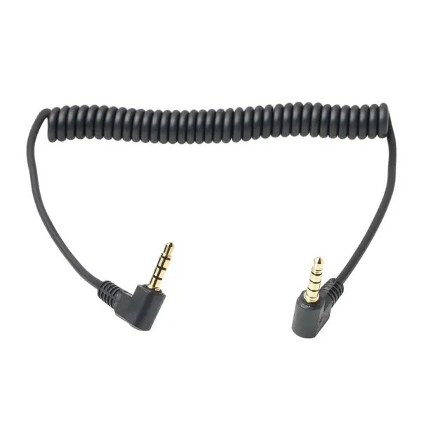 🔌 Cabo espiralado de alta qualidade com conectores P2 (3.5mm) macho de 4 polos (TRRS) em ambas as extremidades.