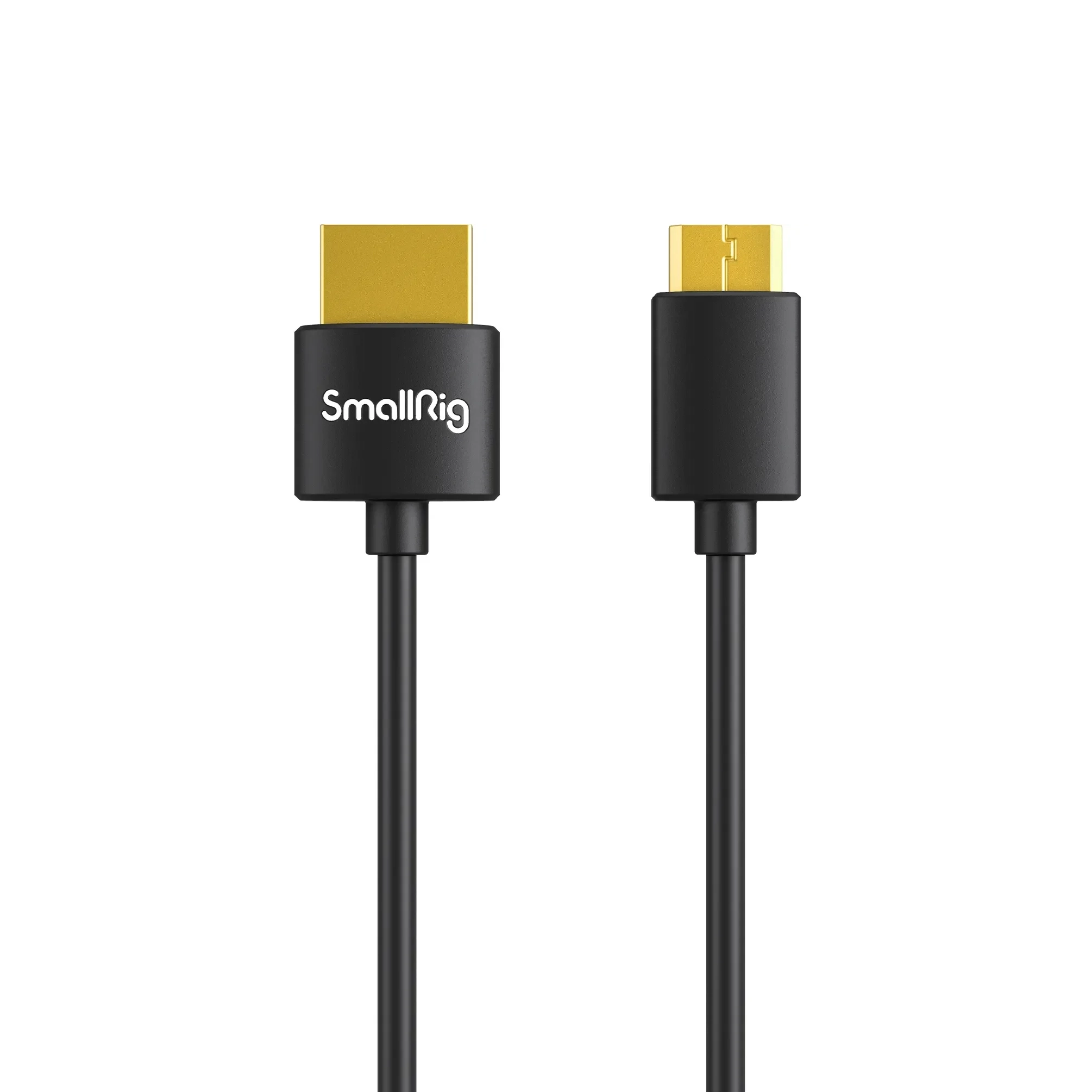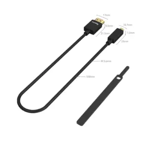 O cabo HDMI SmallRig Ultra Slim 4K (D para A) 55cm 3043 é um cabo HDMI de alta qualidade (Micro HDMI para Full HDMI) especialmente projetado para o seu equipamento de câmera. É a versão HDMI 2.0 e suporta resolução de até 4K @ 60HZ e será compatível com versões anteriores. O design ultrafino com diâmetro externo de 3,6 mm o torna mais fino e mais macio do que um cabo HDMI comum. Conectores de baixo perfil não bloquearão as portas adjacentes. É um cabo HDMI perfeito para o seu equipamento de câmera com um comprimento de cabo de 55 cm. A braçadeira para cabos incluída para gerenciamento de cabos ajudará a tornar sua plataforma mais organizada.