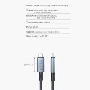 Cabo USB4.0 Tipo-C 240W 40Gbps