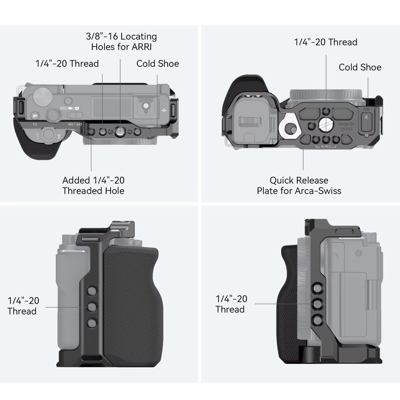 A Cage Gaiola Smallrig Para Câmera Sony Zv-e10 – 3538B foi projetada para fornecer proteção e montagens de acessórios da Câmera Sony ZV-E10.