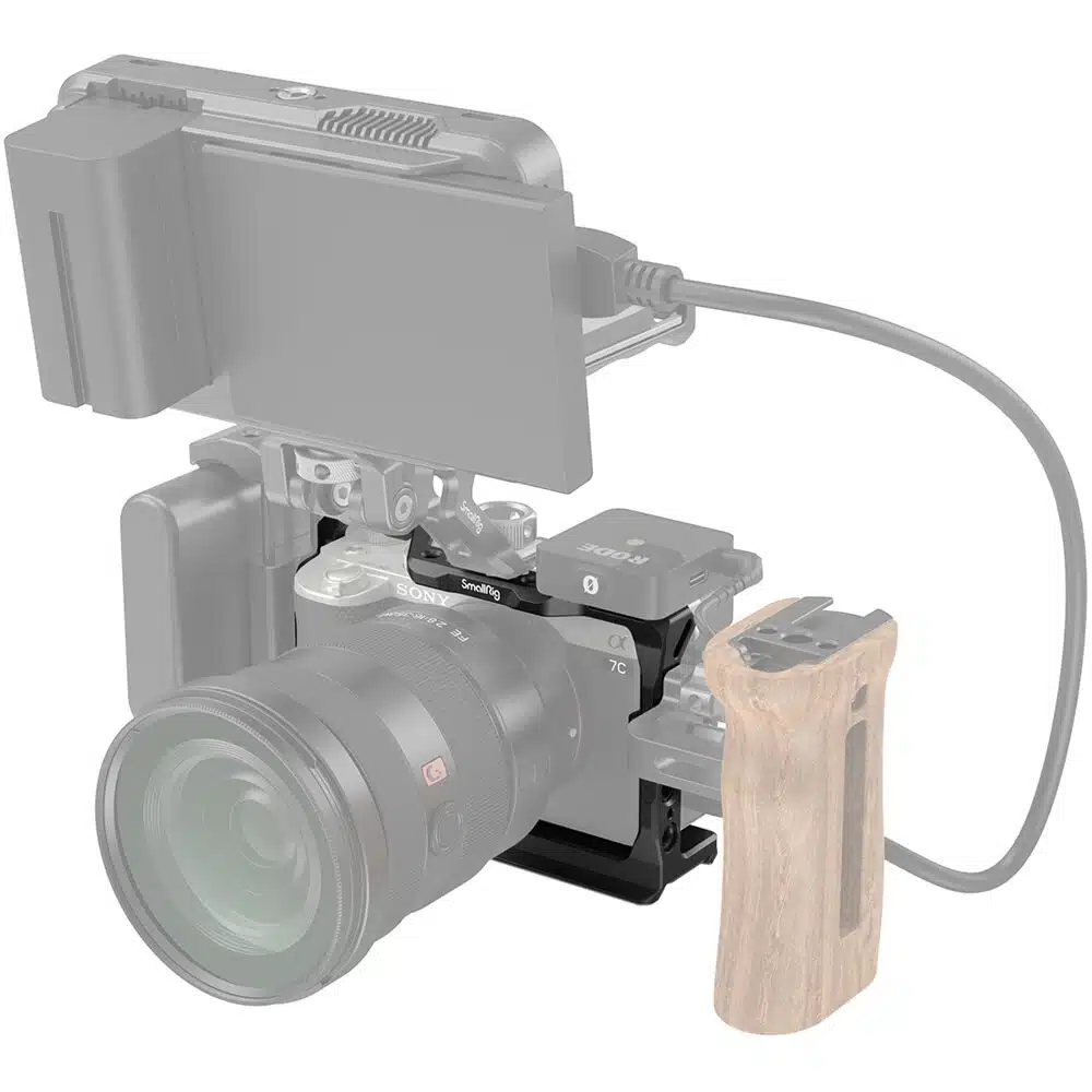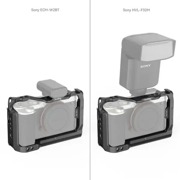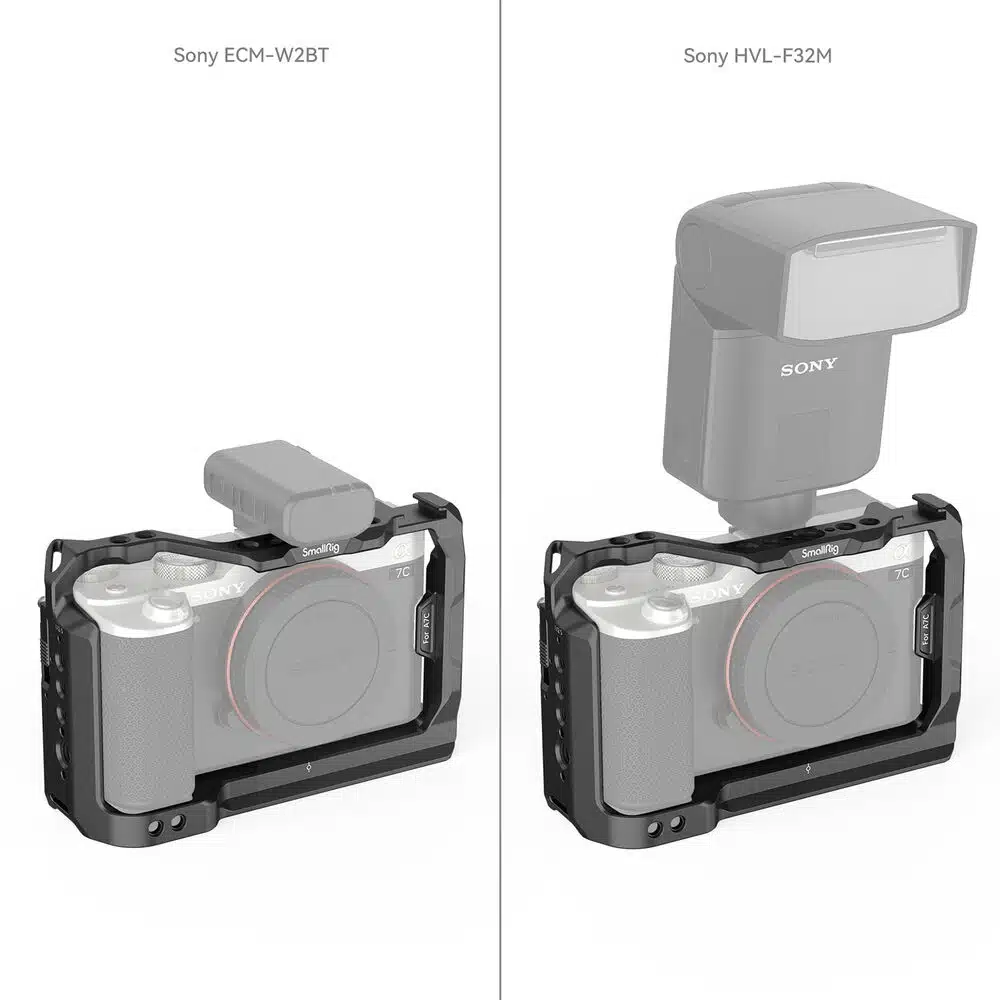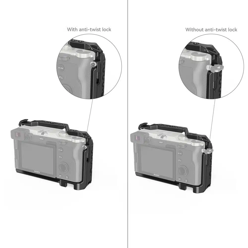 A gaiola de câmera leve da SmallRig fornece montagem de acessórios e proteção para sua câmera mirrorless a7C. A câmera é montada nesta gaiola de alumínio com um parafuso de montagem de câmera integrado de 1/4″-20, pinos anti-torção, uma trava lateral e acolchoamento na base, incorporando um design anti-torção completo para proteger a câmera.
