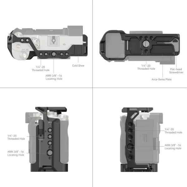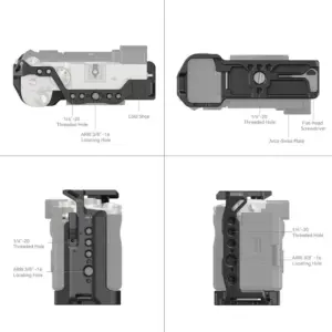 Além de uma montagem de sapata integrada e múltiplas roscas de acessórios de 1/4″-20 e 3/8″-16, a gaiola possui ARRI- suportes de acessórios estilo para evitar que os acessórios torçam quando montados na gaiola. A gaiola também possui uma base tipo Arca integrada para montagem em uma variedade de cabeças de tripé e outros suportes. Uma chave Allen/chave de fenda é armazenada na parte inferior por meio de um ímã para aperto os parafusos da câmera.