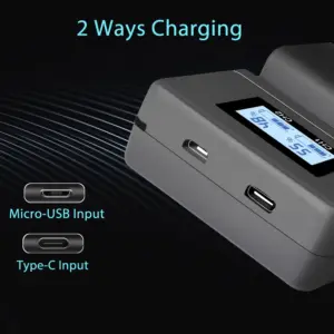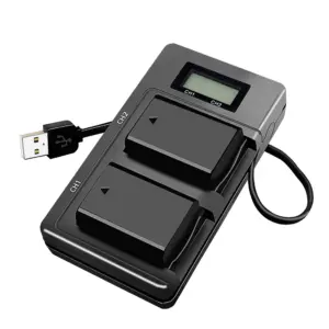 Carregue suas baterias de câmera com eficiência e segurança com o carregador duplo NP-FW50-C. Ideal para fotógrafos e videomakers, este carregador portátil possui 2 slots de carregamento, entrada USB e tela de exibição com informações em tempo real.