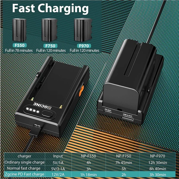 Projetado para profissionais de foto e vídeo, o ZGCINE NP-F001 é a solução prática para quem busca carregamento rápido e alimentação versátil de equipamentos através das baterias da série NP-F.