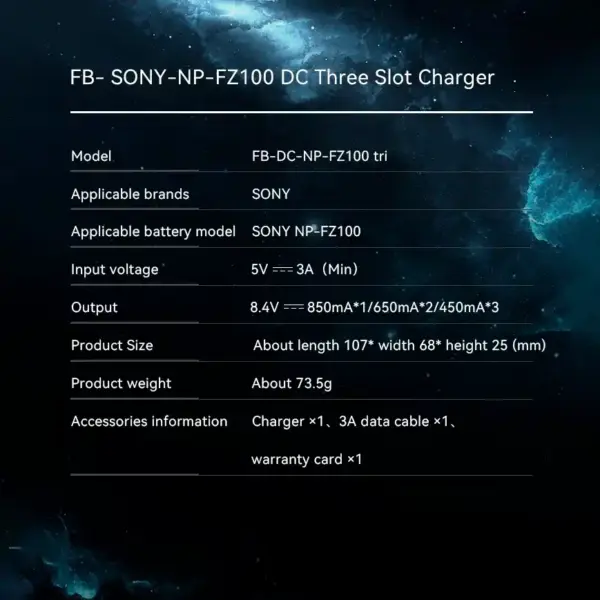 Carregador totalmente compatível com FZ100 baterias originais da Sony.