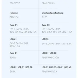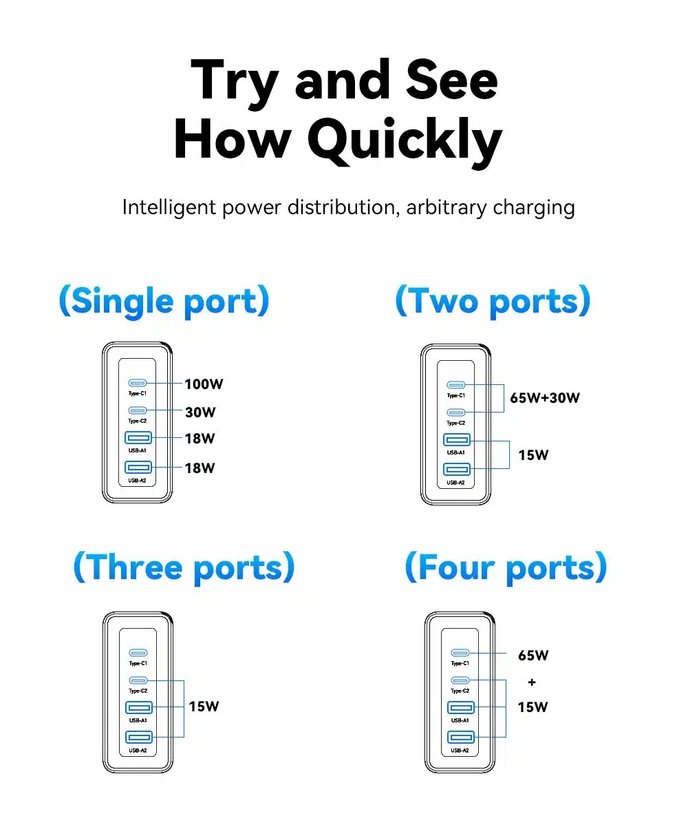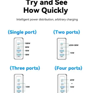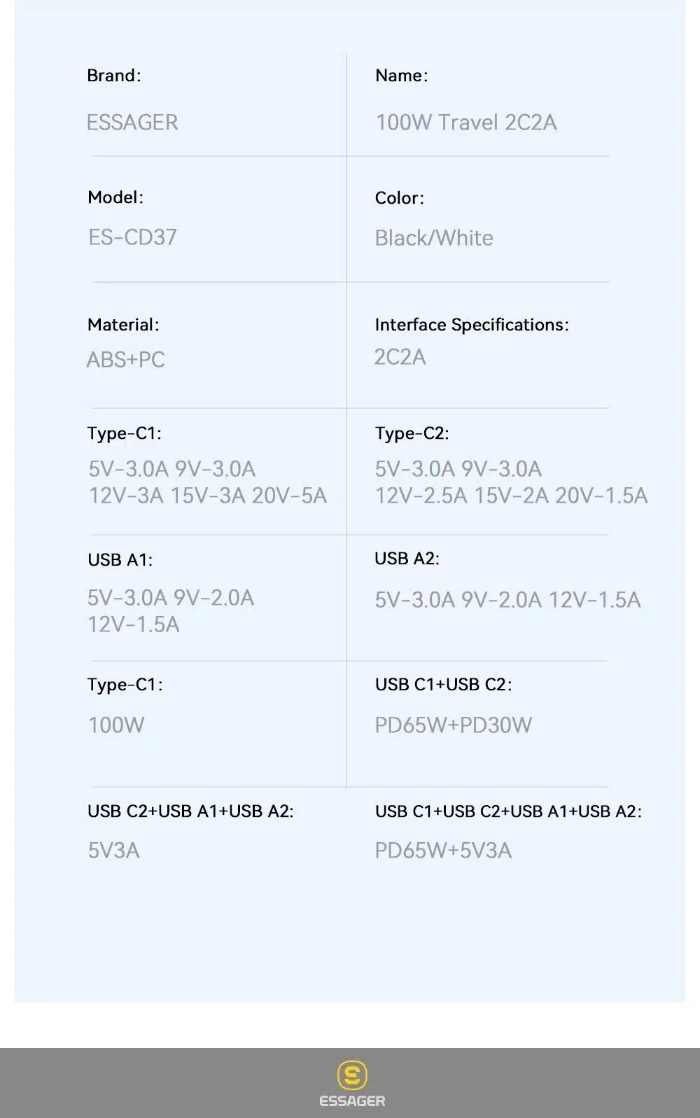 Alta potência: Com uma potência de saída máxima de 100W, este carregador pode lidar com até mesmo os dispositivos mais famintos por energia, como o MacBook Pro.