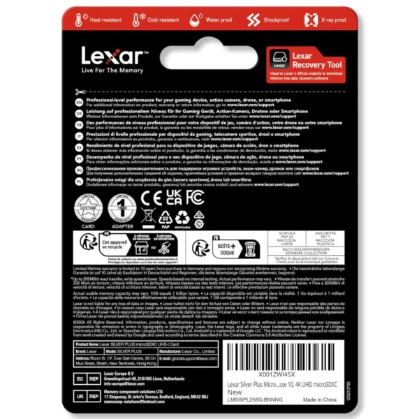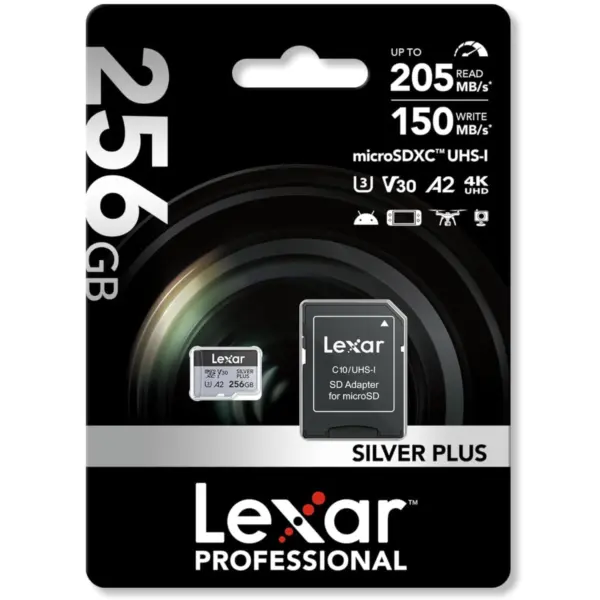 1x Cartão de Memória Lexar 256GB SILVER PLUS microSDXC