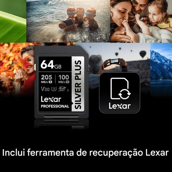 Este Cartão SDXC Lexar Silver Plus vem com a Lexar Recovery Tool para ajudar você a recuperar arquivos excluídos acidentalmente