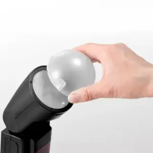 Ao colocar o difusor AK-R22 sobre o flash, a luz emitida fica mais suave e uniforme, reduzindo sombras duras e contrastes fortes.