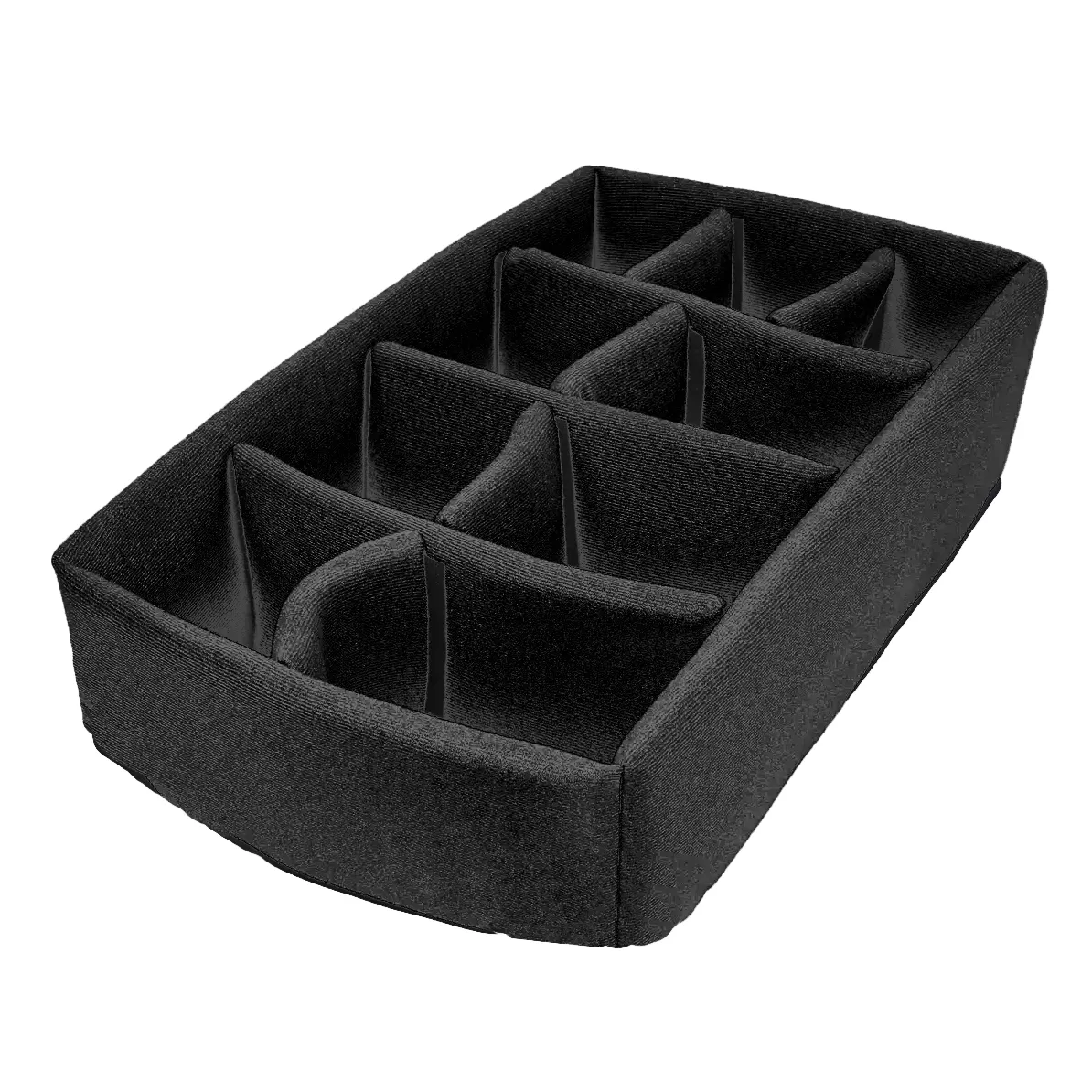 Kit de divisórias, Patola MP 0055 e Pelican 1510, desenvolvido em espuma de polietileno expandido, revestida de material similar ao veludo e divisórias fixadas com velcro.