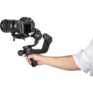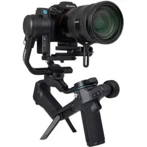 Um sistema de liberação rápida em forma de L aprimorado acomoda filmagens verticais e horizontais. Controles intuitivos e um design ergonômico de alça dupla permitem que o operador acompanhe a ação em posições de ângulo baixo e verticais. Vários modos de filmagem e configurações precisas podem ser acessados pela tela sensível ao toque no punho ou pelo controle do aplicativo Bluetooth. Uma bateria interna de 2500mAh permite que o gimbal funcione por 13 horas seguidas.