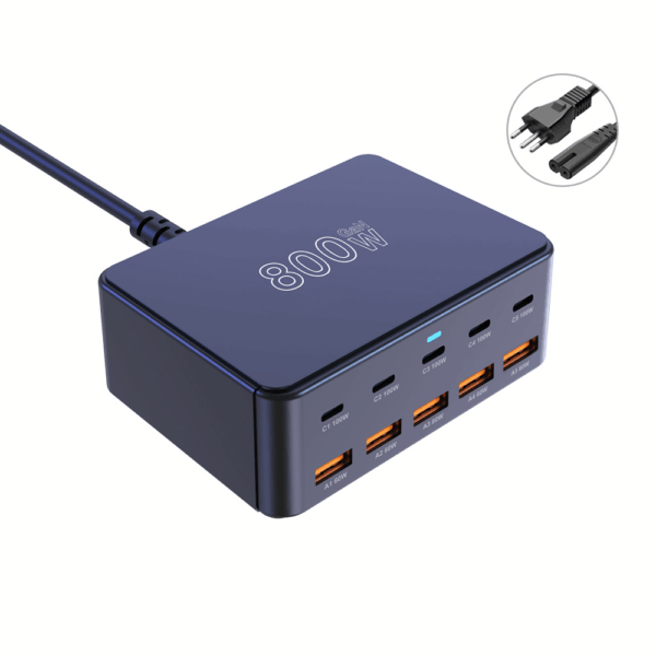 O carregador UHOMEBUY BK-123D é a solução ideal para quem busca potência, versatilidade e eficiência em um único dispositivo. Com impressionantes 800W de potência total, ele oferece 10 portas de carregamento simultâneo, sendo 5 portas USB-C com até 100W e 5 portas USB-A com até 60W, garantindo carregamento ultrarrápido para smartphones, tablets, notebooks e outros dispositivos.