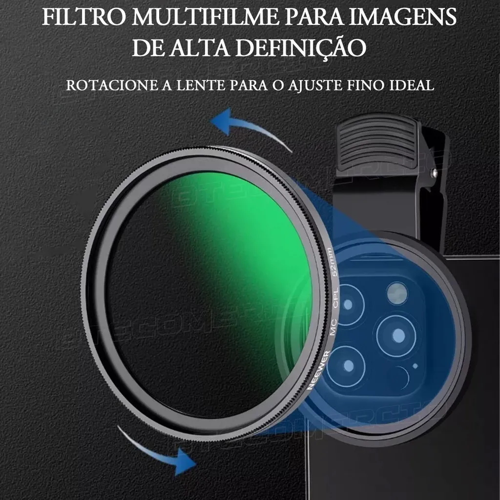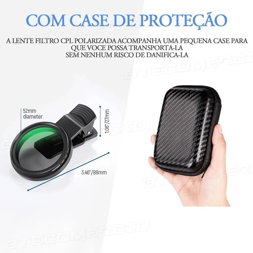 Filtro CPL Polarizador 52mm para Celular com Clipe + Estojo