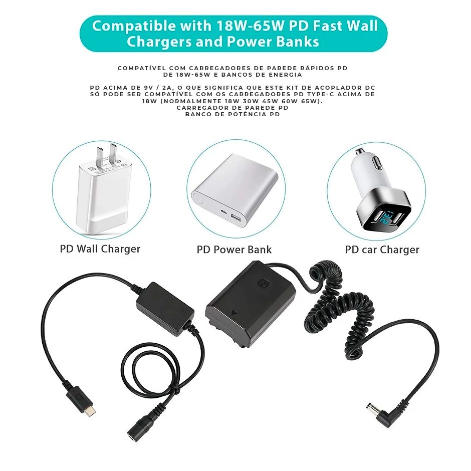 Fonte Adaptador USB-C Dummy Pd para Sony Np-fz100