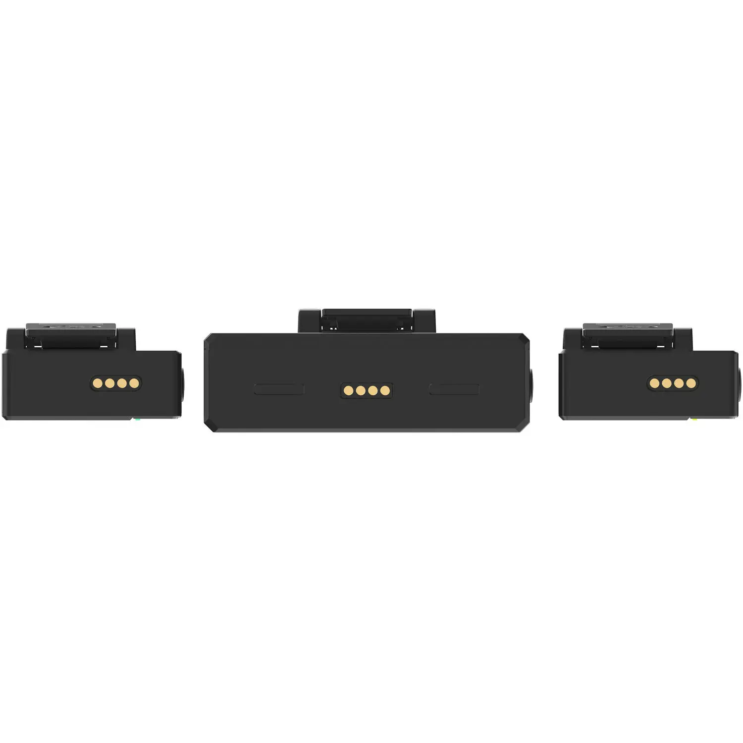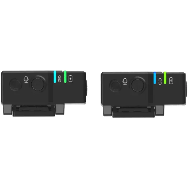 Tanto os transmissores quanto o receptor possuem baterias recarregáveis integradas. Cada transmissor funcionará por até 4 horas, enquanto o receptor oferece até 7,5 horas de operação; isso significa que, para filmagens com uma única pessoa, o segundo transmissor pode ser usado para estender o tempo de filmagem, se necessário. O estojo de armazenamento e transporte incluído emparelha automaticamente os componentes e os recarrega em 2,5 horas usando sua porta de entrada USB.