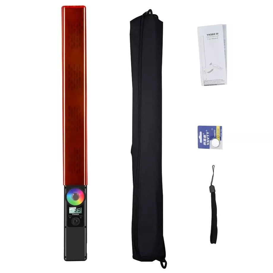 Com um design exclusivo de 23″ de comprimento, o bastão led YN360 III RGB da Yongnuo é ideal para segurar na mão, divertido de usar e capaz de produzir efeitos de iluminação distintos e criativos. Neste Kit acompanha um tripé de iluminação ampliando ainda mais a diversidade e facilidade no manuseio do bastão!