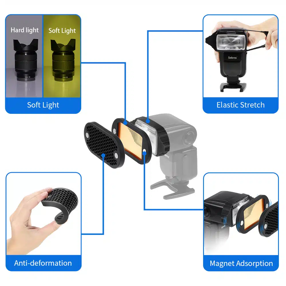 Selens Flash Speedlight Honeycomb Grid Difusor Refletor com Magnetic Gel Banda 7Pcs filtros Flash Kit Acessórios