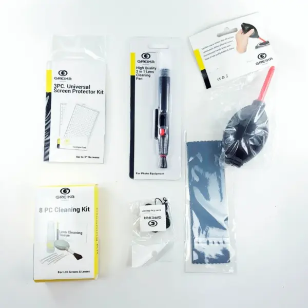 Kit de Limpeza WOA2048 Greika,mantenha seu equipamento limpo, seguro e livre de impressões digitais, poeira e detritos com este kit completo para a limpeza de câmeras, lentes objetivas, telescópios, binóculos e eletrônicos em geral.