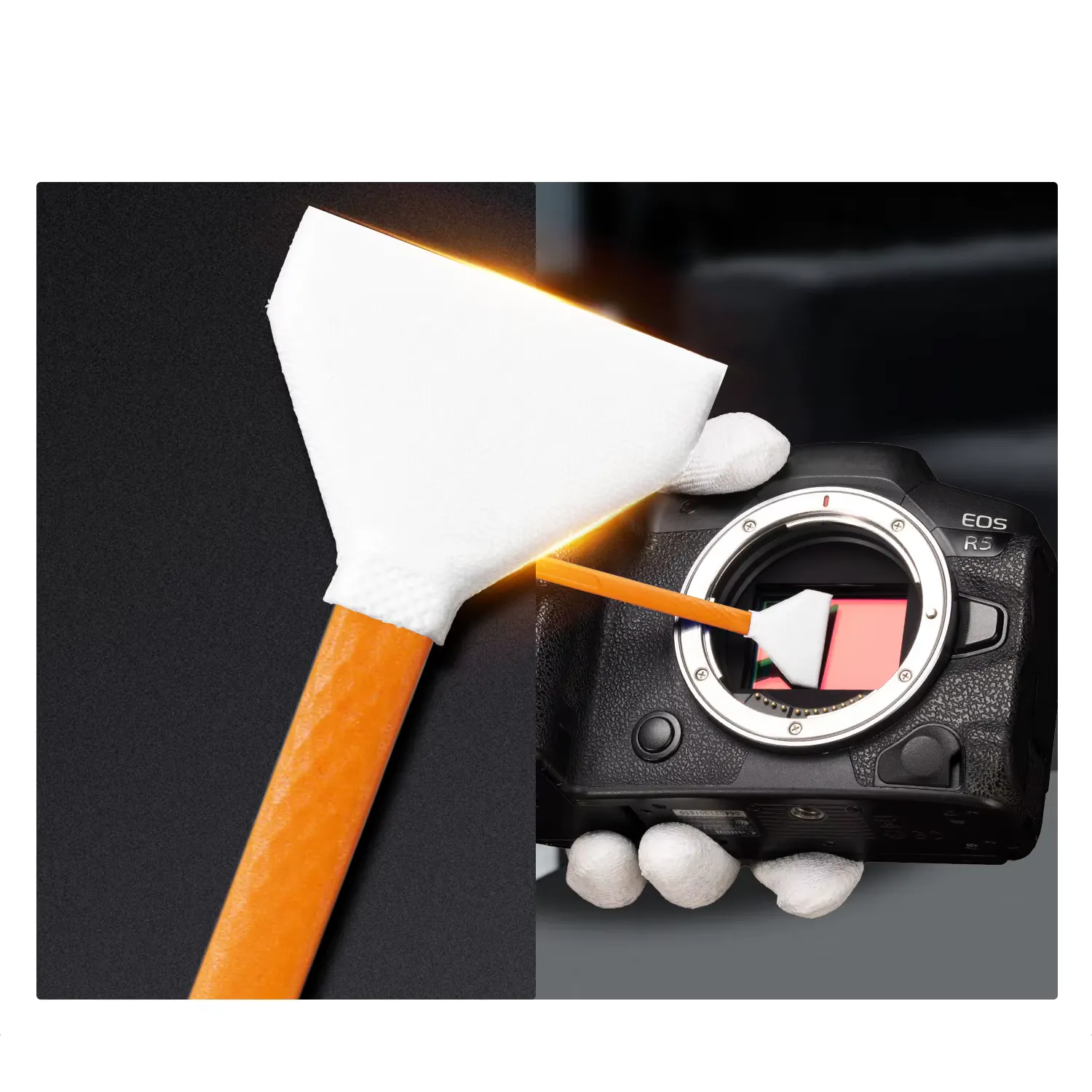 Os cotonetes de limpeza para sensor são projetados especificamente para câmeras de sensor APSC, garantindo encaixe perfeito e limpeza segura. A haste flexível, sem fiapos e sem marcas, permite aproximar o aplicador do sensor com precisão, sem risco de danos. Cada unidade possui largura de 24 mm e é embalada individualmente a vácuo, preservando higiene e eficácia.