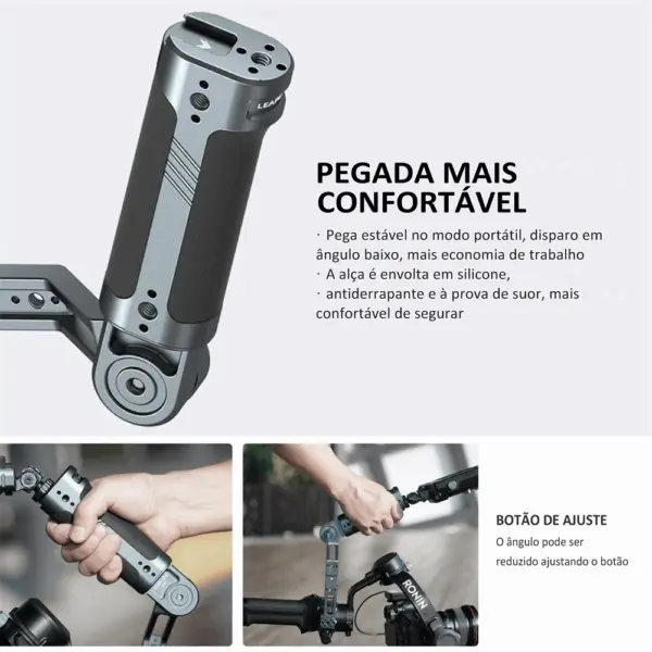 - Melhoria na Ergonomia: O cabo de apoio oferece uma pegada mais confortável e segura, reduzindo a fadiga durante longas sessões de filmagem.