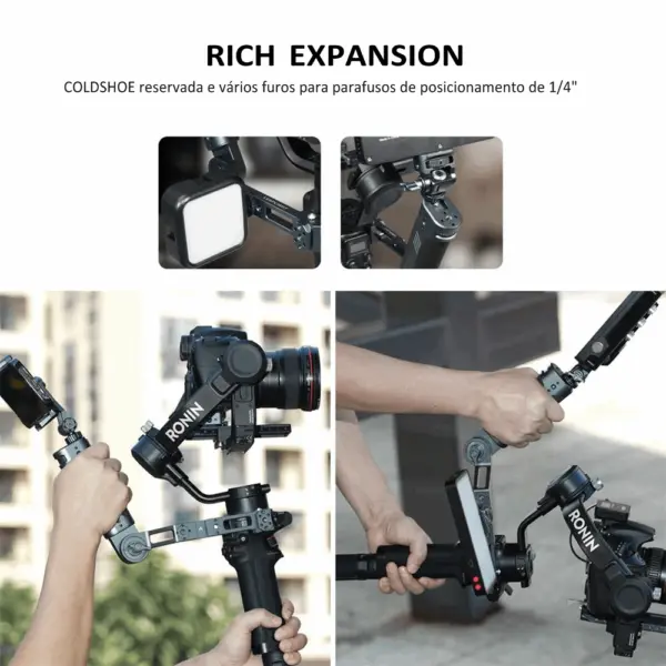 - Modelos Compatíveis: DJI RS2, RSC2, RS3, RS3 Mini, RS3 PRO, RS4, RS4 PRO