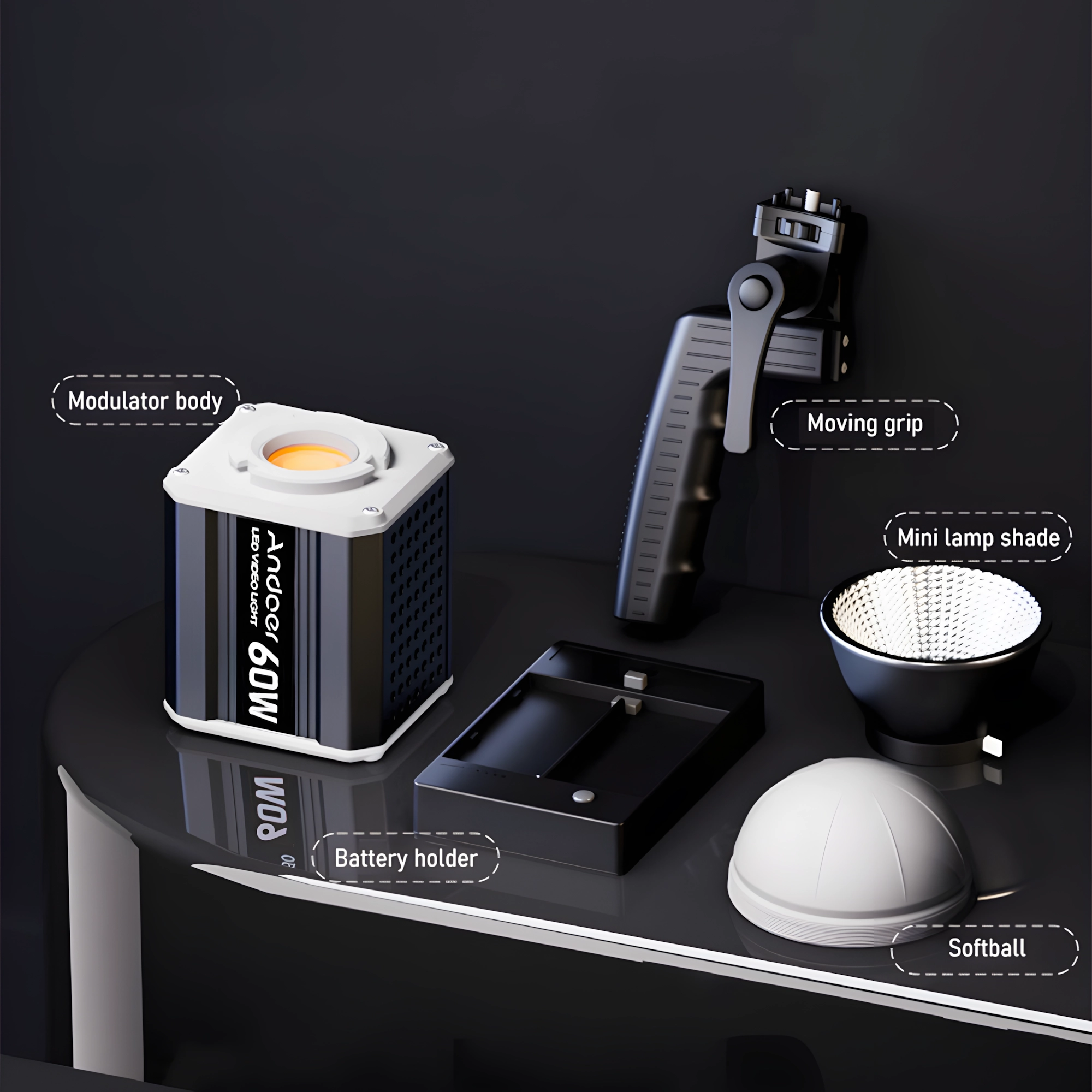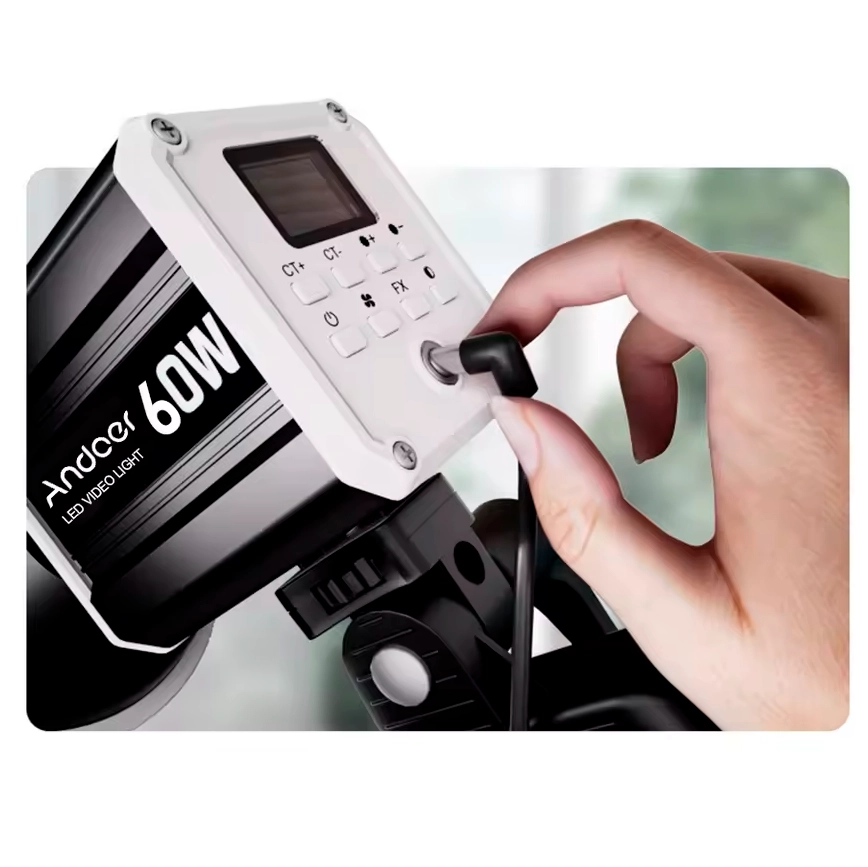 O Iluminador de LED Andoer 60W possui LED de alta potência, proporcionando alto brilho e fonte de luz estável. Com um CRI (Color Rendering Index) superior a 90, esta luz LED de vídeo reproduz com precisão as cores dos objetos. É perfeito para capturar cores verdadeiras. Permite ajustes de potência e temperatura de cor. Você tem a capacidade de alterar a temperatura da cor entre 2800K e 6800K. O iluminador possui uma função de ventoinha que pode ser ligada ou desligada, proporcionando um modo silencioso e uma experiência de iluminação mais agradável. Ele foi projetado para manter a luz fresca. Possui um display LCD grande e de alta definição, permitindo que você monitore e ajuste facilmente as configurações.