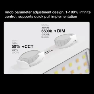 - Controle de Iluminação Ajustável:Temperatura de cor ajustável: 2500K a 9000K, permitindo transição entre luzes quentes e frias conforme a necessidade.