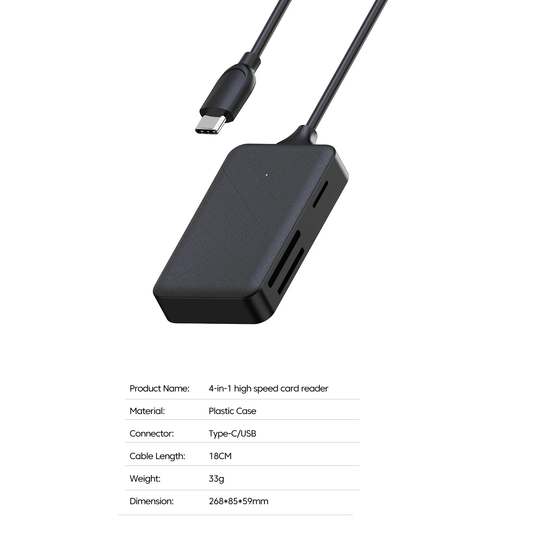 O leitor de cartões adota um design super mini, que permite colocá-lo em uma pasta ou bolso e usá-lo em qualquer lugar. Material do ABS para a dissipação térmica mais rápida.