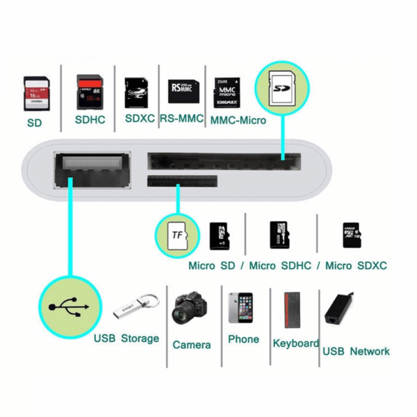 - Funciona como leitor de cartão para SD, TF (Micro SD) e USB 2.0.