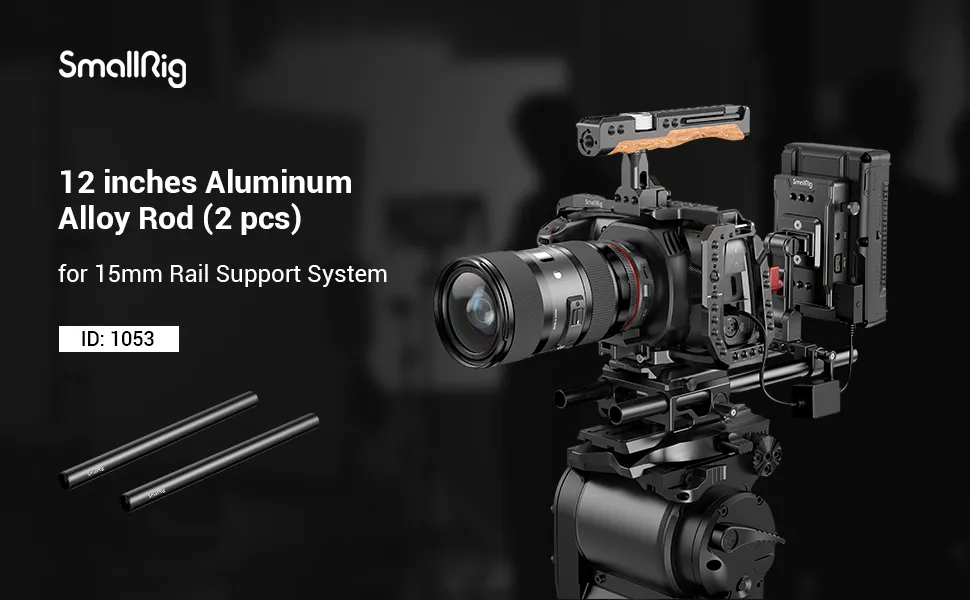 SmallRig 2pcs 15mm Black Aluminum Alloy Rod (M12-30cm) 12 polegadas 1053