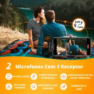 Com latência ultrabaixa de aproximadamente 25ms, o Sistema de Áudio para iOS Lightning J11 possui feedback em tempo real, projetado para suas necessidades de transmissão ao vivo! O Estojo de armazenamento e carregamento traz capacidade de 300mAh, e é alimentado através de um conector USB-C, atendendo às necessidades de um dia de gravação! Além disso este Sistema Microfone Wireless para SmartPhone Apple possui chip de redução de ruído, capacidade anti-interferência foi aprimorada e o som original pode ser identificado de forma eficaz, e uma gravação nítida ainda pode ser obtida em ambientes barulhentos!