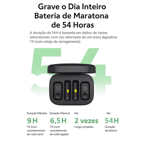 - Inclui 2 Transmissores, 1 Receptor de Porta de Iluminação, 1 Receptor USB-C e um estojo de carregamento