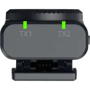• O receptor para montagem em câmera é de canal duplo e possui uma interface de montagem em câmera integrada. Uma porta de saída TRS de 3,5 mm grava áudio diretamente no dispositivo de sua escolha. Os controles integrados permitem alternar entre os modos estéreo e mono ou ajustar o volume da sua gravação. Os indicadores LED mostram o status do modo de cada unidade transmissora. Use os cabos USB-C e TRS de 3,5 mm incluídos para adaptar as portas existentes no receptor a uma ampla variedade de dispositivos.