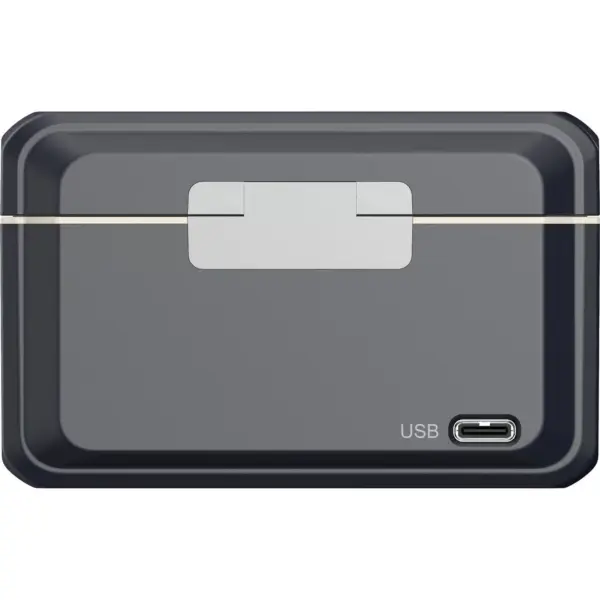 • O estojo de carregamento foi projetado especificamente para acomodar o receptor montado na câmera e duas unidades transmissoras. Sua bateria interna de 1950mAh pode recarregar todo o sistema três vezes para uma duração total de 40 horas.
