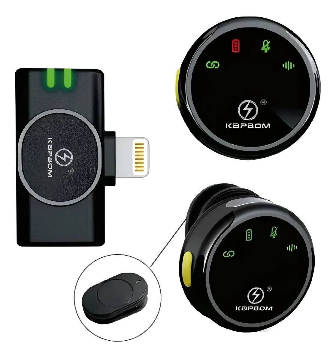 Microfone Lapela Sem Fio Kapbom S2MIC com Duas Unidades Recarregáveis – Conector Lightning