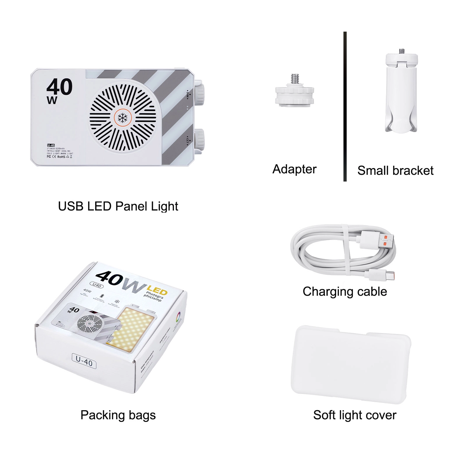 O Modelo U40 é a solução ideal para quem busca uma luz LED poderosa, portátil e de alta qualidade, capaz de atender às demandas de profissionais e entusiastas da fotografia e videografia. Com seu design compacto e funcionalidades avançadas, ele se adapta a qualquer cenário, garantindo resultados impressionantes.