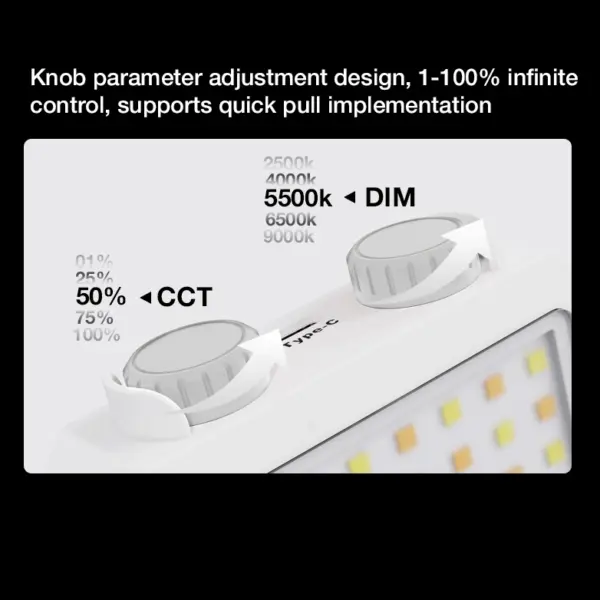 - Controle Intuitivo:Modo de controle: Rotação, permitindo ajustes precisos e rápidos da temperatura de cor e brilho.