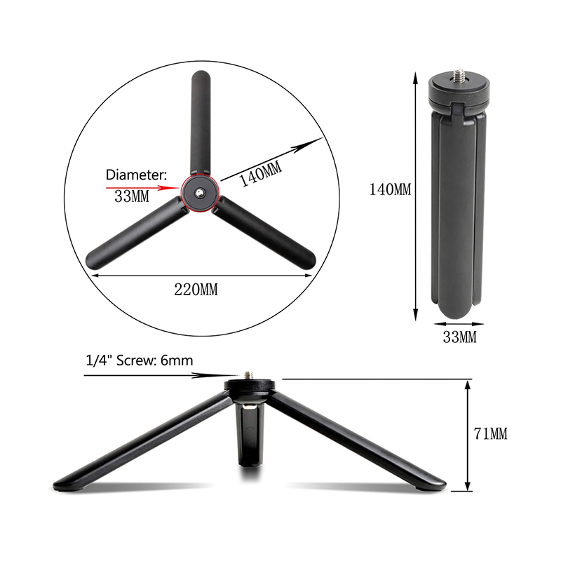 Com parafuso padrão de 1/4 de polegada, compatível com DSLR, ILDC, câmeras de ação, filmadoras, projetores, etc.