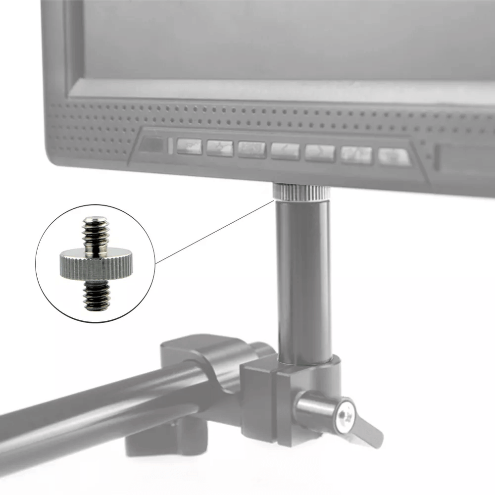 Adaptador de Parafuso 1/4″-20 para 1/4″-20 para Estúdios de Fotografia e Filmagem, possui Rosca Macho nas duas extremidades, ele permite converter uma rosca fêmea de 1/4″-20 em 1/4″-20 macho. O Adaptador de Parafuso universal é aplicável para dispositivos com furo de 1/4″-20, para uso em estúdio de fotografia e Filmagem, em equipamentos como Câmeras Digitais, Filmadoras, Tripé, Cabeça Esférica, Suportes de iluminadores, Monitores entre outros acessórios.