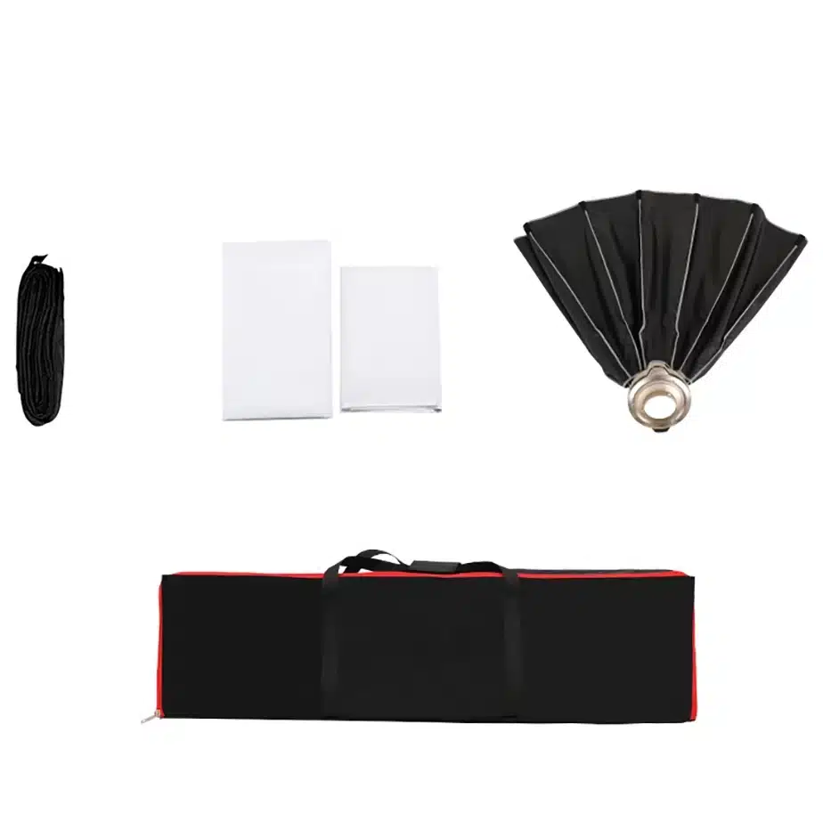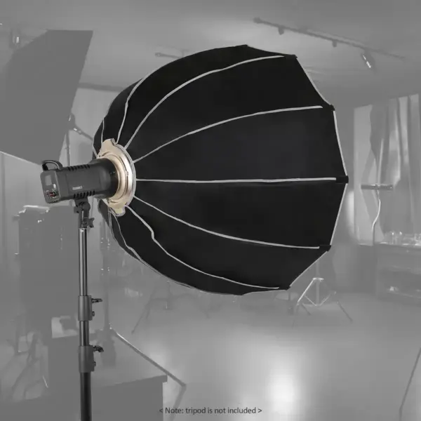 O Softbox Parabólico 90cm é um modificador de luz profissional projetado para oferecer iluminação suave e controlada, ideal para estúdios fotográficos e filmagens. Com formato parabólico e construção em dupla camada