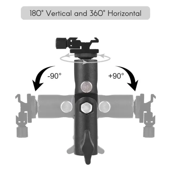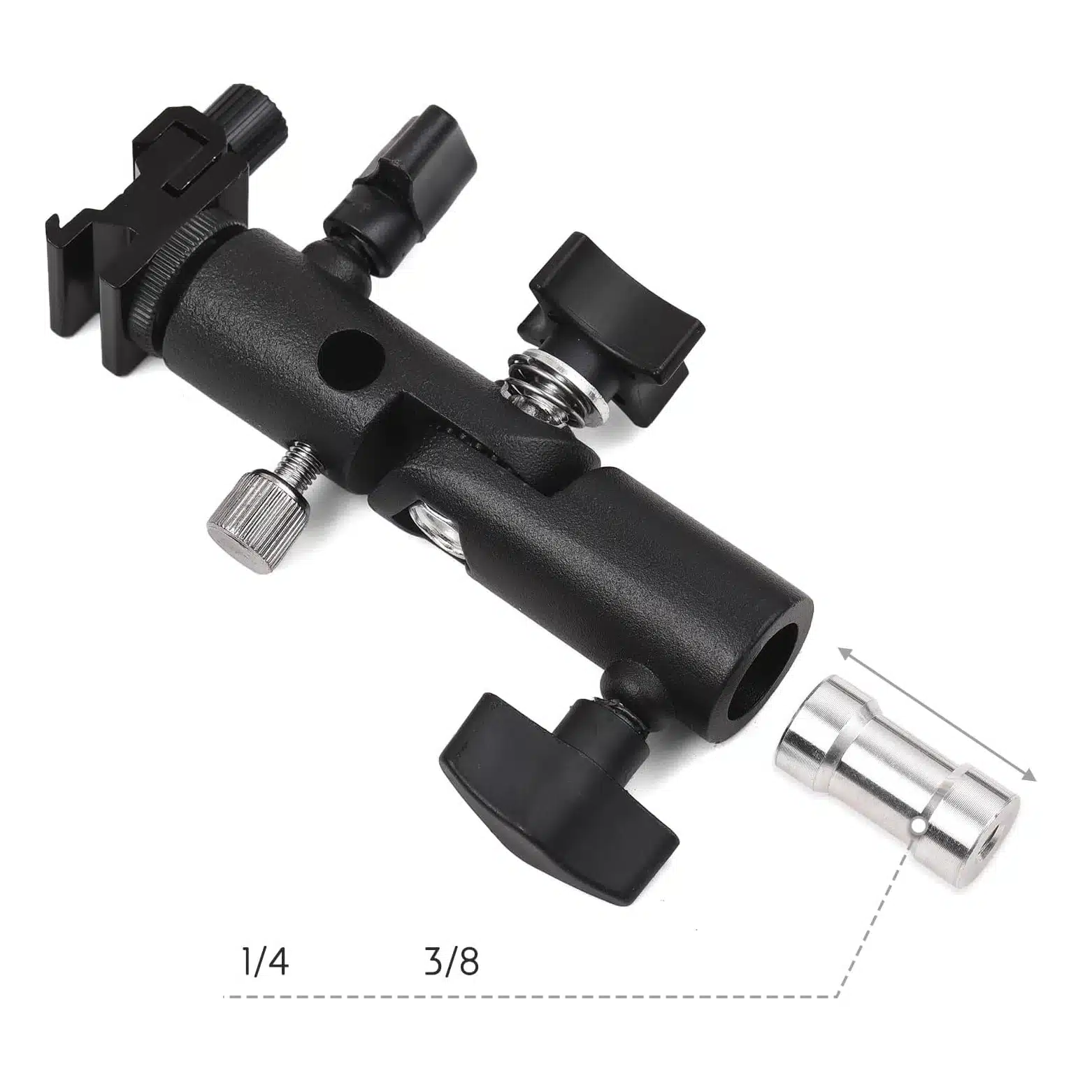 Produto de alta qualidade, fixa seu flash com segurança e praticidade a qualquer tripé de iluminação que tenha pino de 16mm de diâmetro.