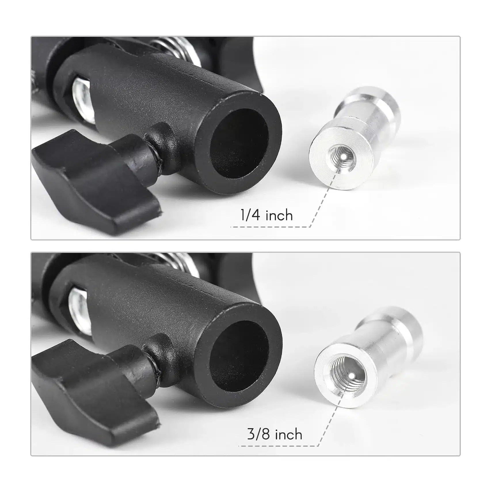 Este suporte oferece controle total sobre o posicionamento do flash e da sombrinha. Corpo feito em alumínio fundido, leve e resistente, combinado com plástico resistente este modelo de suporte garante muito mais estabilidade e segurança ao seu equipamento do que os modelos de plástico. Simples de montar e desmontar possui cabeça articulada para a montagem dos equipamentos no ângulo ideal para iluminar os assuntos de suas fotos.