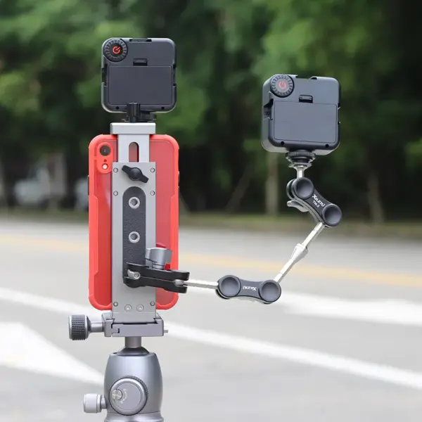 Double Secure: O botão principal na parte de trás pode bloquear diretamente o dispositivo, e o botão de ajuste fino na parte superior pode fortalecer o bloqueio, tornando tudo mais seguro. Isso evita que o dispositivo trema ou caia.