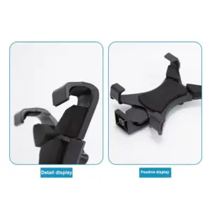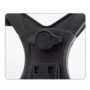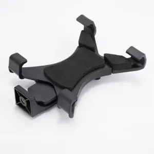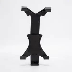 Suporte com estrutura reforçada e sistema de ajuste de largura entre 13 cm e 20 cm, oferecendo fixação firme e segura para diferentes modelos de tablets e dispositivos de grande porte.